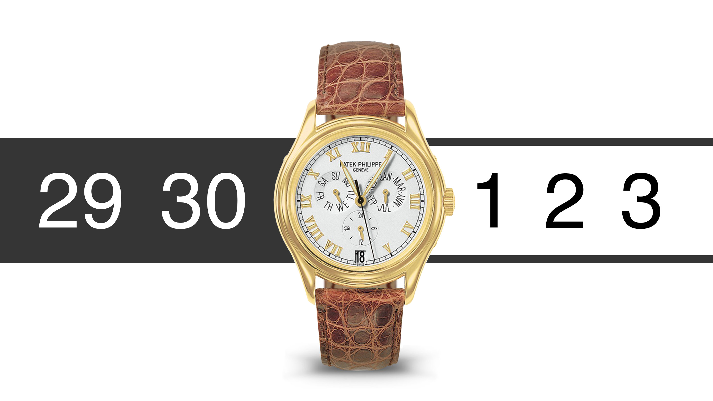 The first two examples of the new Glashütte Original PanoMaticCalendar, in platinum and rose gold. Image, Glashütte Original