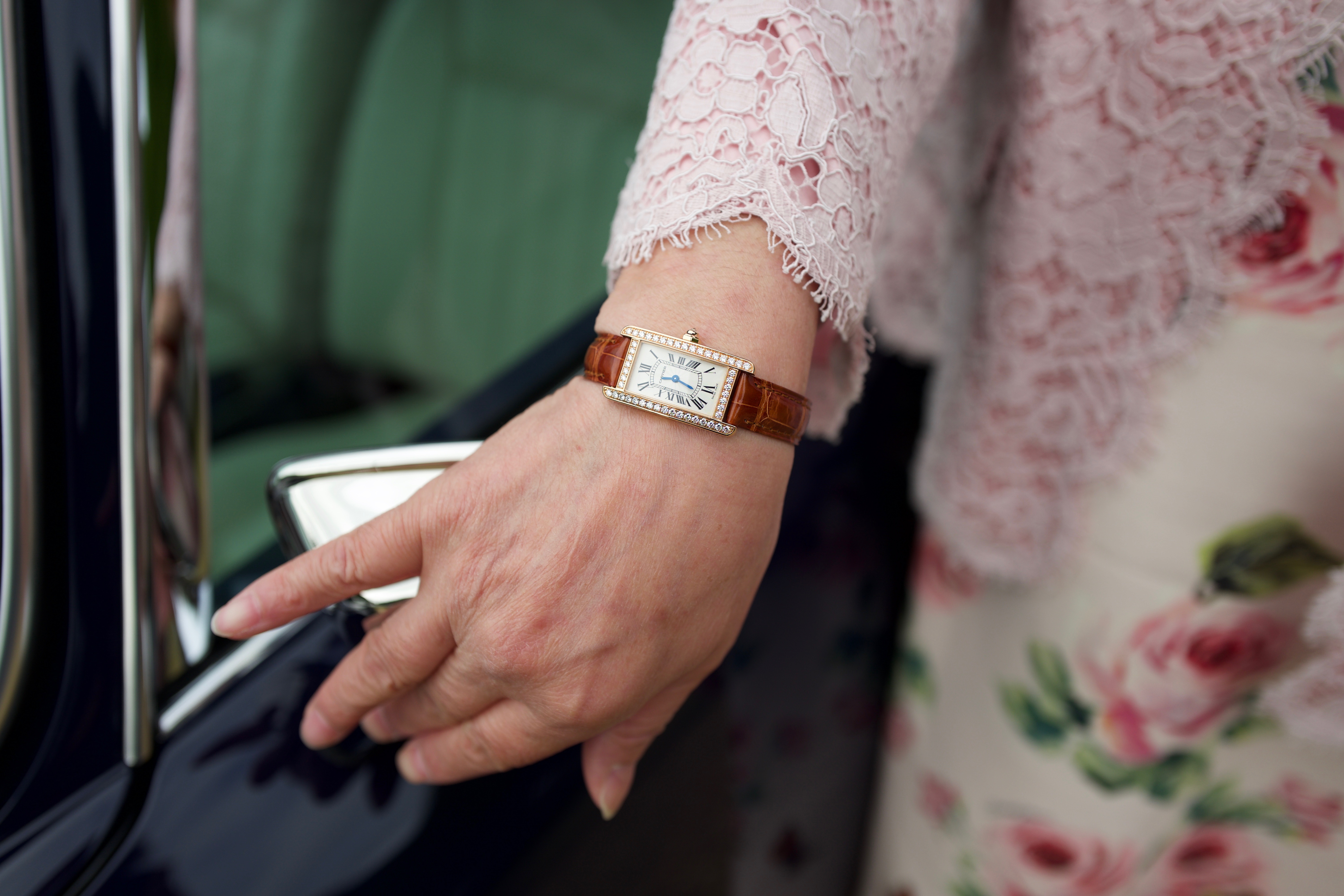 ... and her Cartier Tank Américaine diamond set.