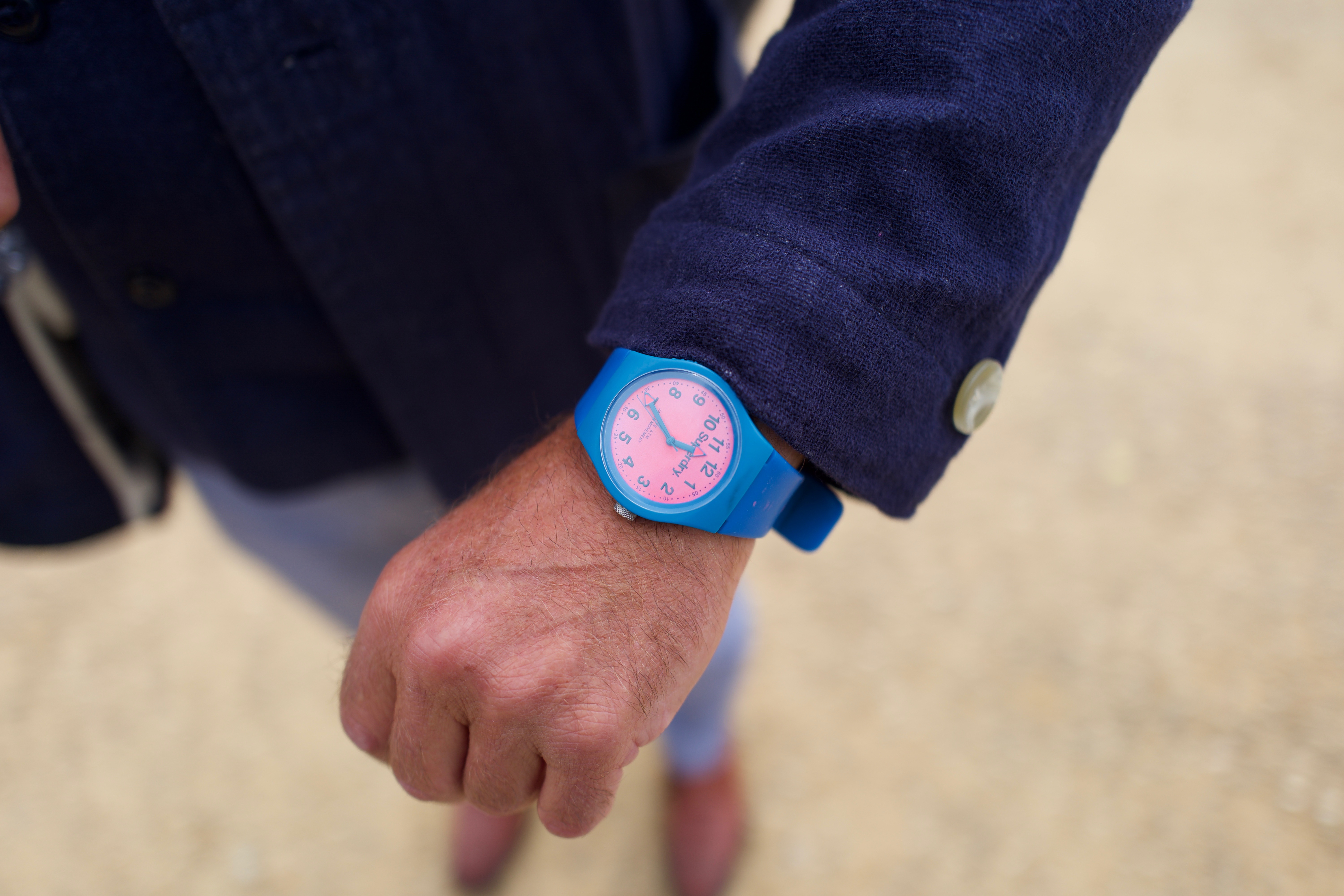 Not what I was expecting. A pink dial, plastic Superdry watch on the wrist.